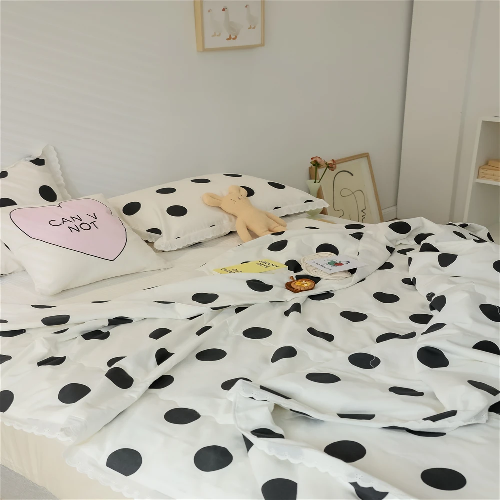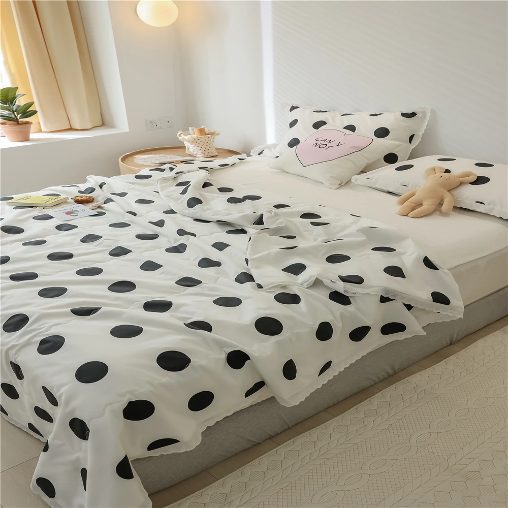 Special Offer بسيطة الصيف لحاف ناعم للفتيات أبيض أسود النقاط باردة لحاف صيفي بطانية النوم الصيف قطن الجدي Only150x200 Discount [NEW!!] Today!
