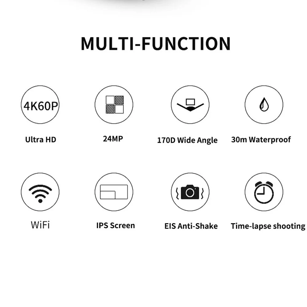 Product Name: عمل كاميرا 4K 60fps واي فاي في الهواء الطلق كاميرا رياضية الذهاب مقاوم للماء برو شاشة تعمل باللمس شاشة مزدوجة 24MP 170D خوذة تسجيل الفيديو الكاميرا
