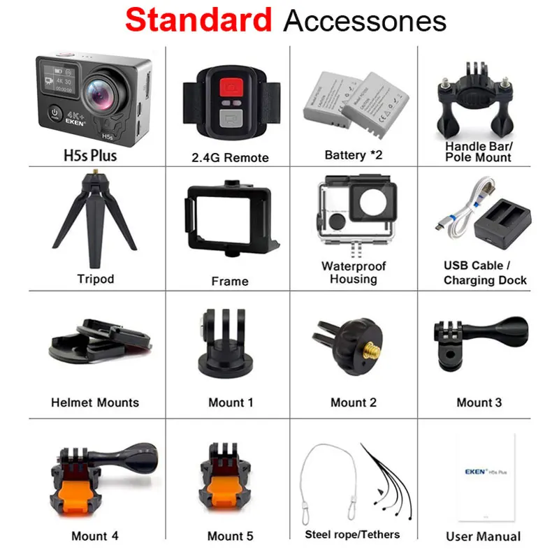Product Name: الأصلي كاميرا رياضية مقاومة للماء 4k كاميرا فيديو واي فاي EKEN H5s زائد عمل الكاميرا