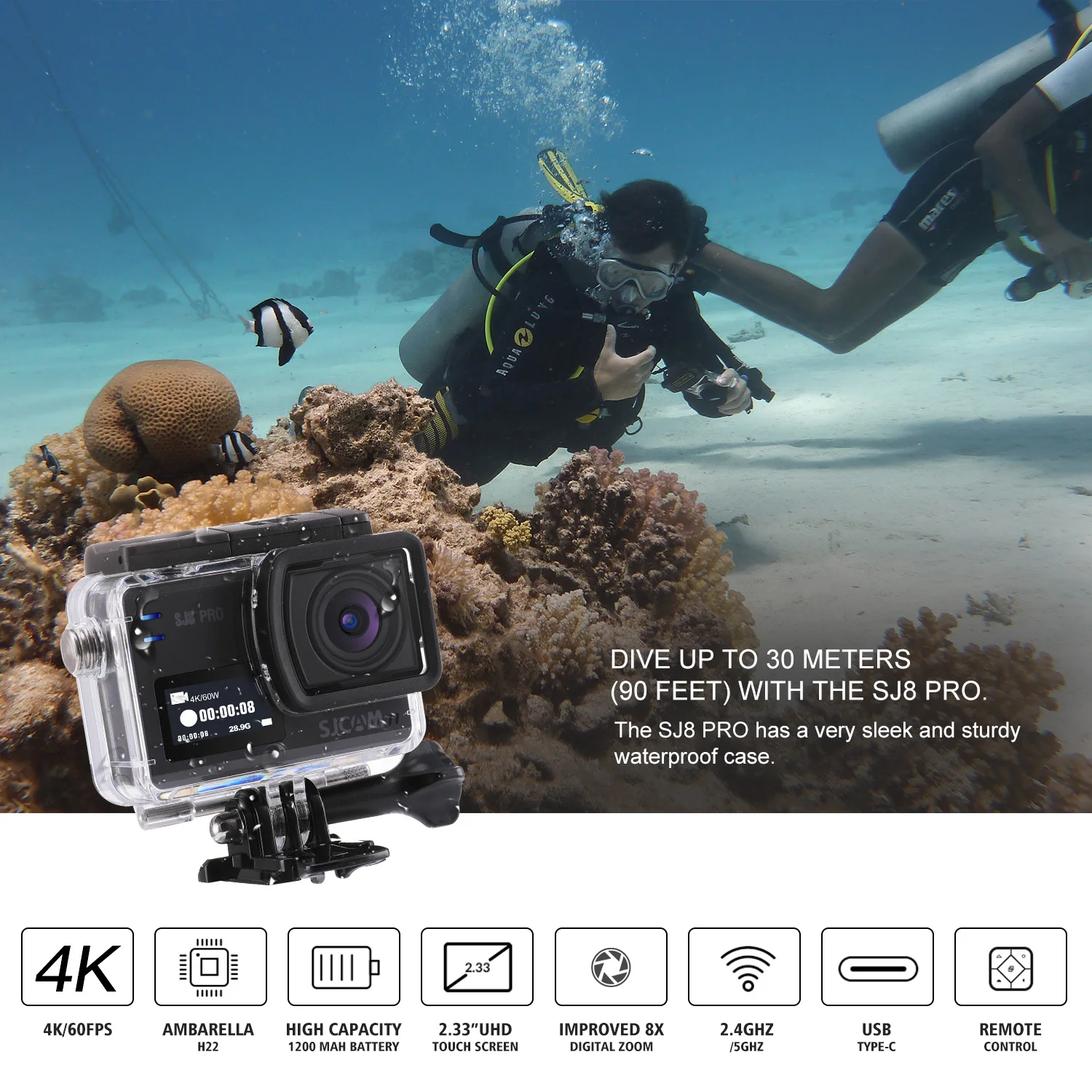 Product Name: SJCAM SJ8 Pro 4K 60fps كاميرا رياضية مقاومة للماء المضادة للاهتزاز المزدوج شاشة تعمل باللمس واي فاي التحكم عن بعد عمل كاميرا الرياضة DV