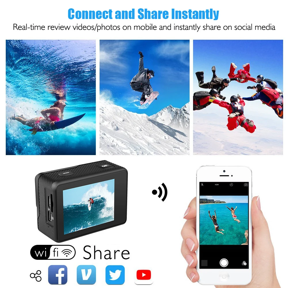 Product Name: GoPro كاميرا رياضية مضادة للاهتزاز عمل الكاميرا الترا HD 4K / 60fps واي فاي 2.0 "170D تحت الماء مقاوم للماء خوذة كاميرا فيديو
