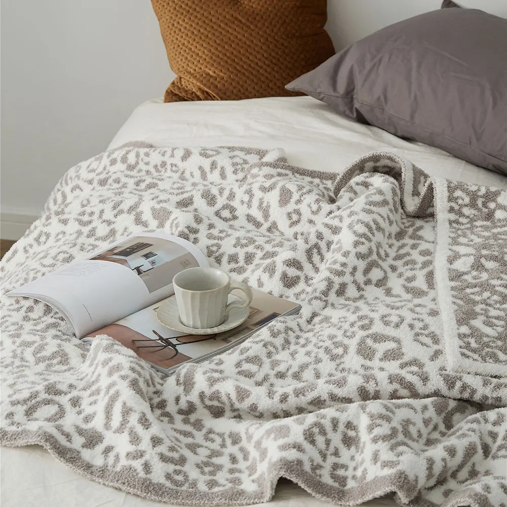 Product Name: بطانية بخيط مبطن صيفي محبوك بطباعة الفهد رمادي فاتح من Papa & Mima برميات من الأكريليك من الألياف الدقيقة غطاء السرير المشروط للهواء