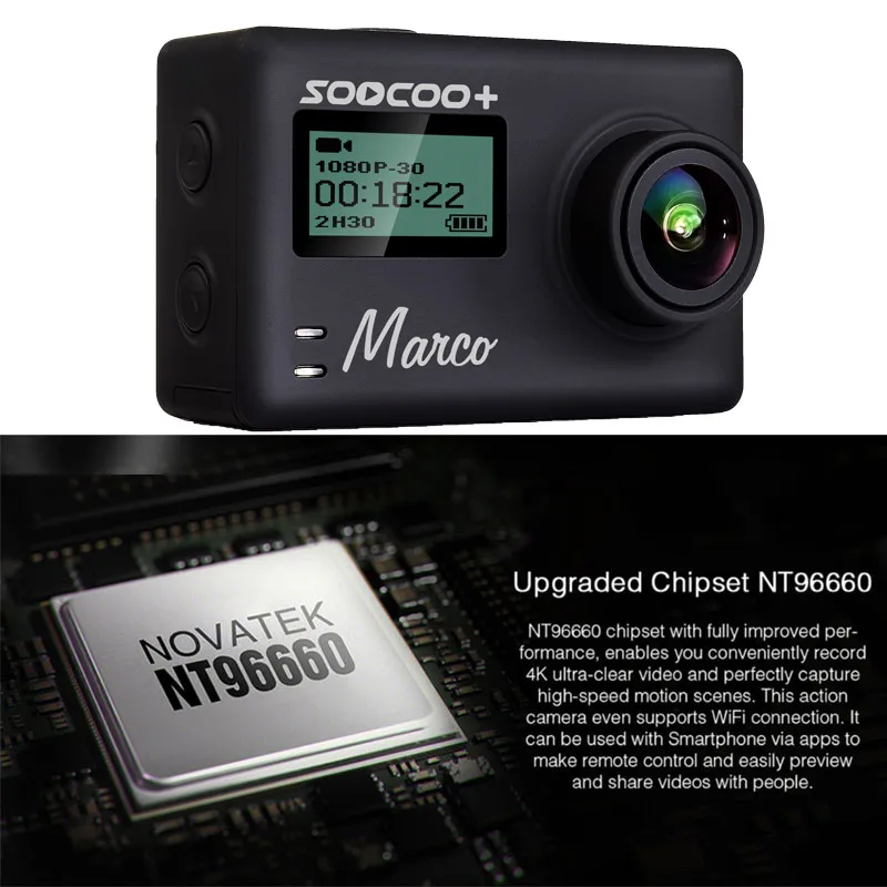 Product Name: SOOCOO-كاميرا أكشن رياضية Wifi 4K 24fps 20MP Gryo ، جهاز تحكم عن بعد صوتي ، ميكروفون ، GPS ، عمق 30 متر ، خوذة مقاومة للماء ، كاميرا أكشن