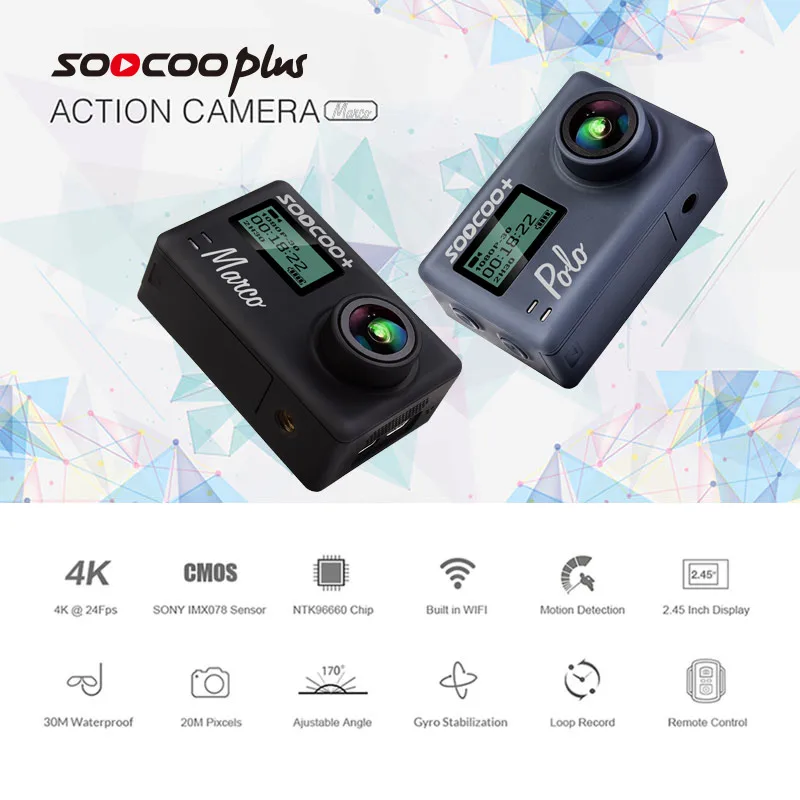 Special Offer SOOCOO-كاميرا أكشن رياضية Wifi 4K 24fps 20MP Gryo ، جهاز تحكم عن بعد صوتي ، ميكروفون ، GPS ، عمق 30 متر ، خوذة مقاومة للماء ، كاميرا أكشن Discount (20%OFF) Today!
