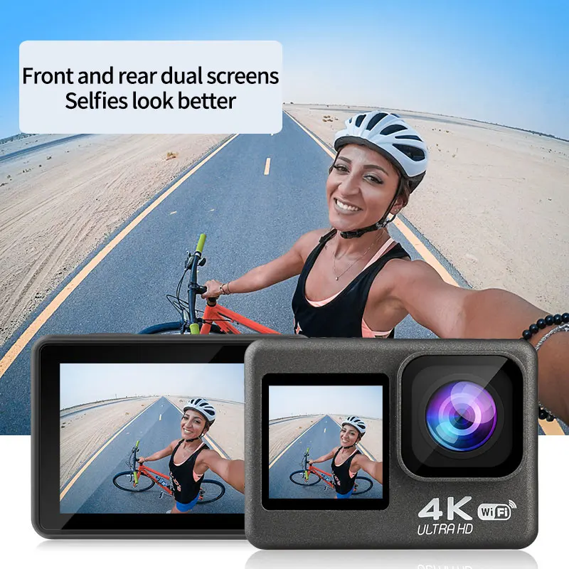 Product Name: كاميرا الحركة 4K/60fps تعمل باللمس شاشة مزدوجة واي فاي التحكم عن بعد 2.0 بوصة 170D 30 متر مقاوم للماء كاميرا رياضية في الهواء الطلق كاميرا فيديو DV