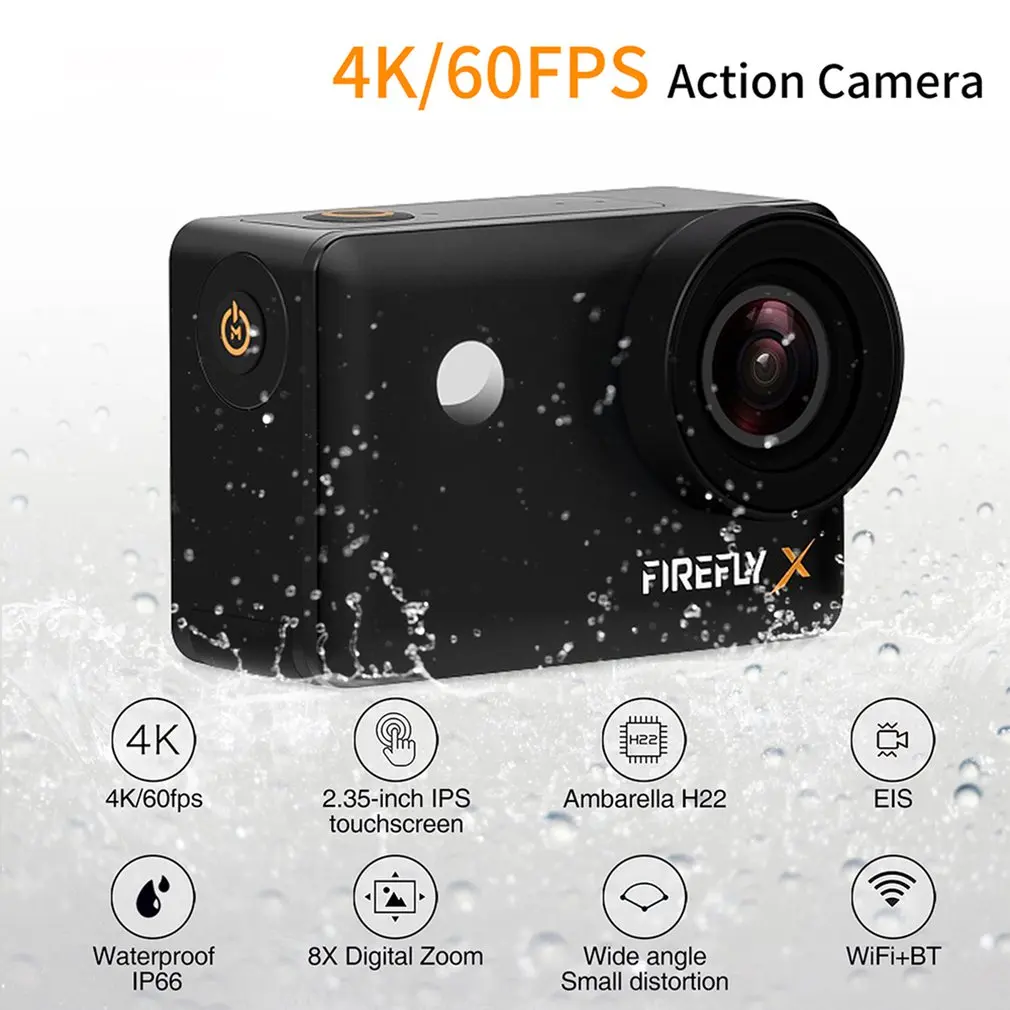 Product Name: اليراع X واي فاي FPV 4K عمل كاميرا 170 درجة زاوية واسعة كاميرا رياضية IP66 مقاوم للماء المضادة للاهتزاز لمس الكاميرا